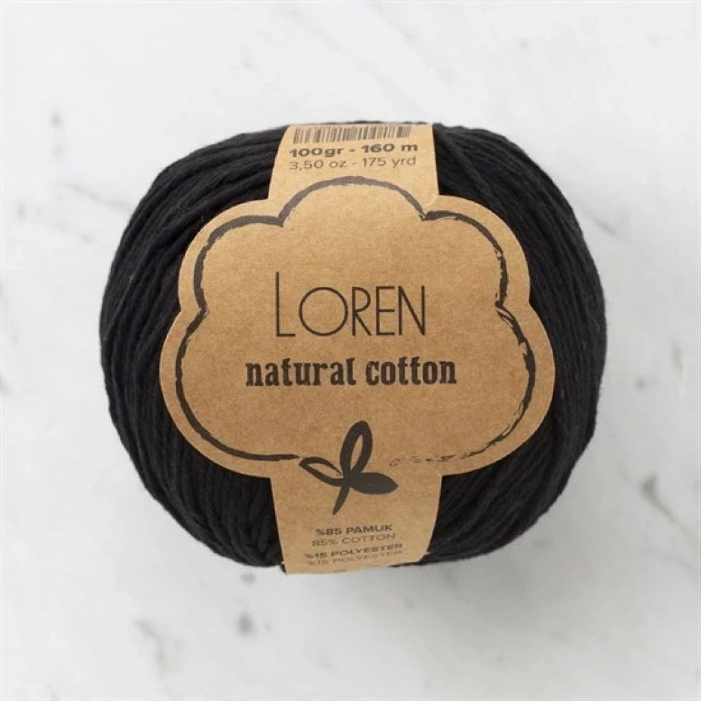 Loren Natural Cotton Siyah El Örgü İpi - R004 - 33908